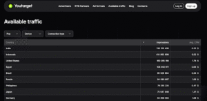 Youtarget працює у понад 220 країнах. Найсильніші регіони, які вдалося протестувати, це СНД, Африка та Латинська Америка. Зараз більше фокусуюся на Азії, там теж багато доступного трафіку (можна тут подивитися).